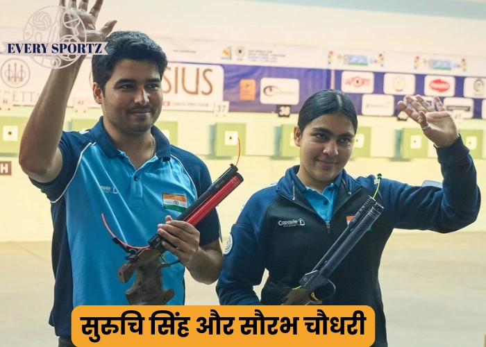 सुरुचि सिंह और सौरभ चौधरी ने 10 मीटर एयर पिस्टल मिश्रित टीम स्पर्धा में कांस्य पदक जीता। उन्होंने भारतीय जोड़ी मनु भाकर और रविंदर सिंह को 16-8 से हराया।